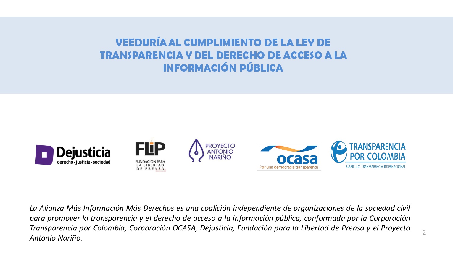 2. Informe de resultados de la veeduría al cumplimiento de las obligaciones de transparencia activa y pasiva por parte de las cuatro Altas Cortes y de la Fiscalía General de la Nación.